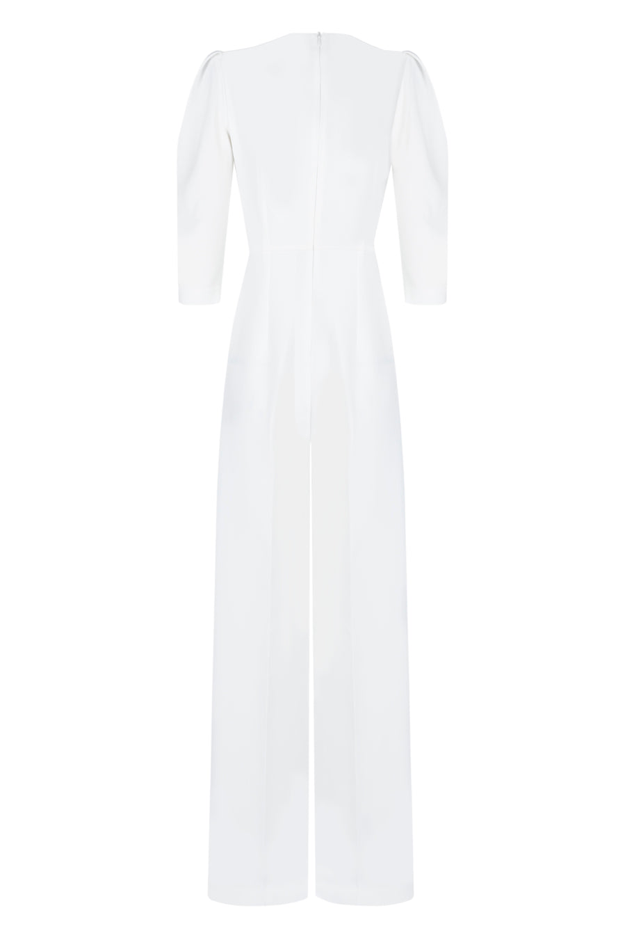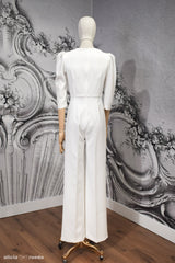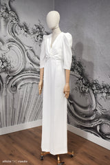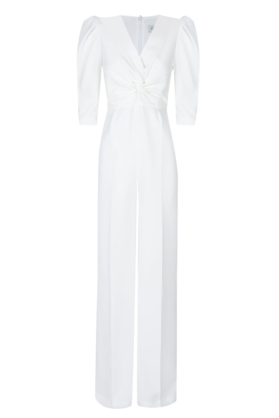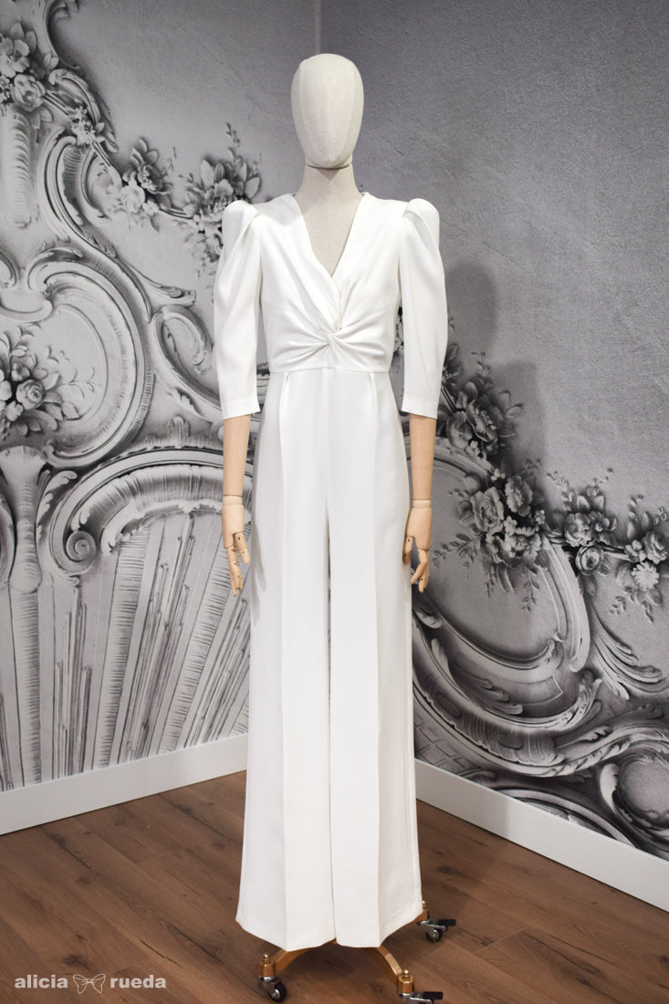 Buzo en crepé con detalle de nudo en escote, manga francesa y pantalón palazzo.