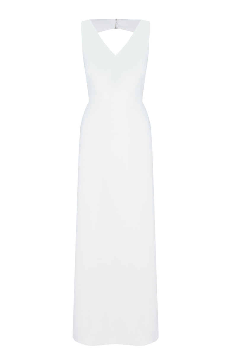 Vestido recto realizado en crepé . Espalda abierta, abertura y botones joya.