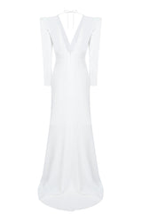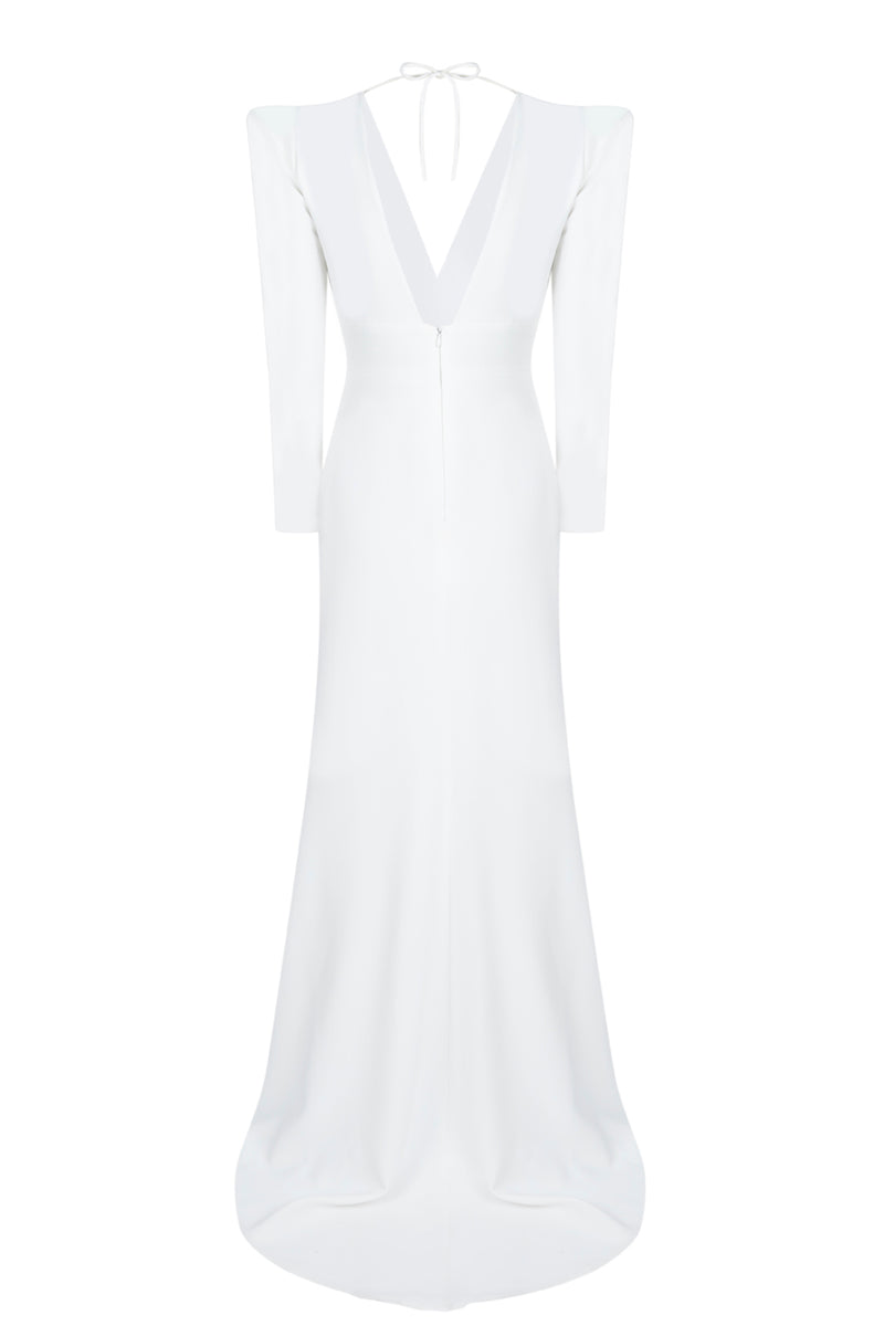 Vestido estructurado realizado en crepé con hombrera y corte en cintura.